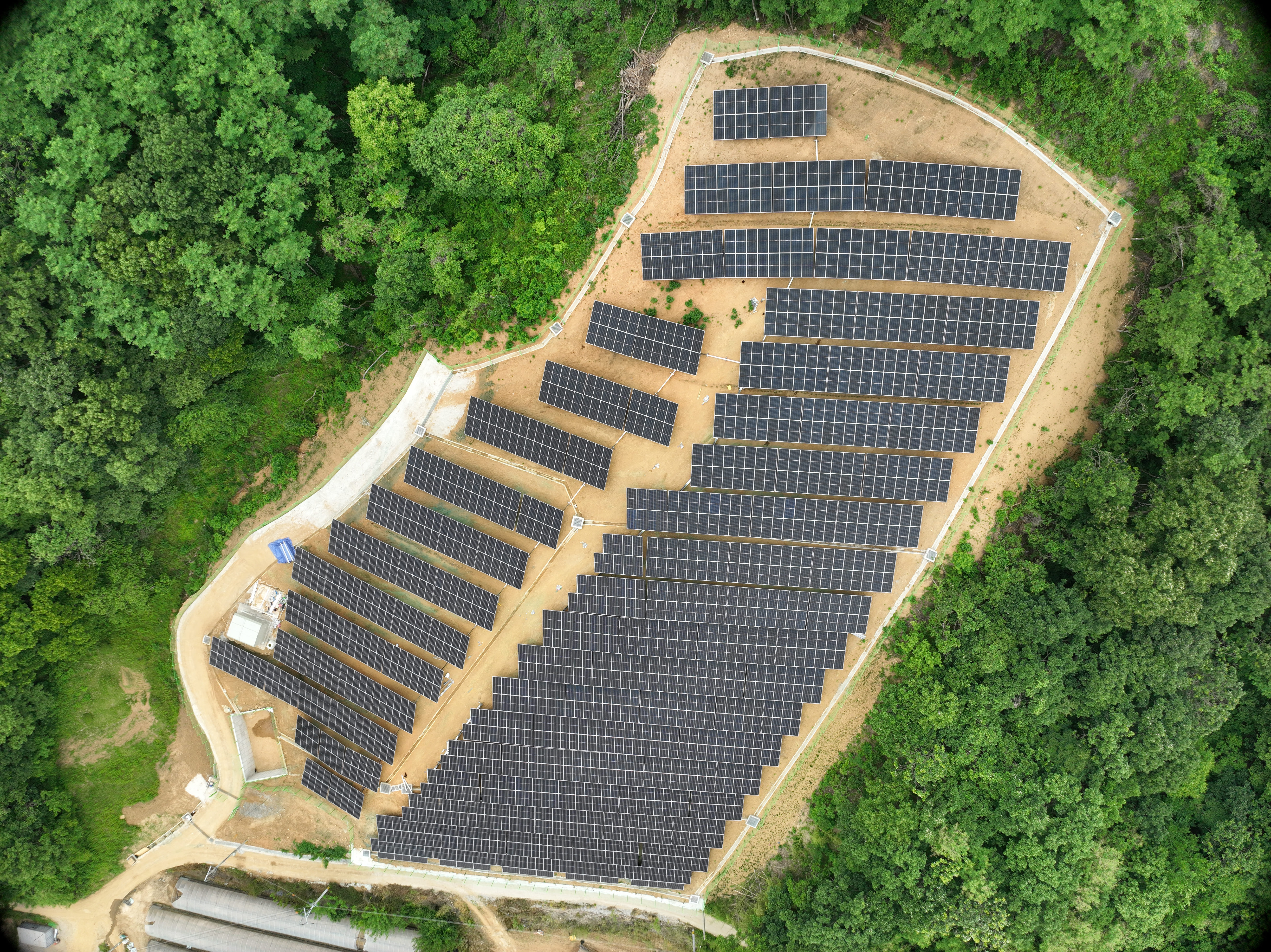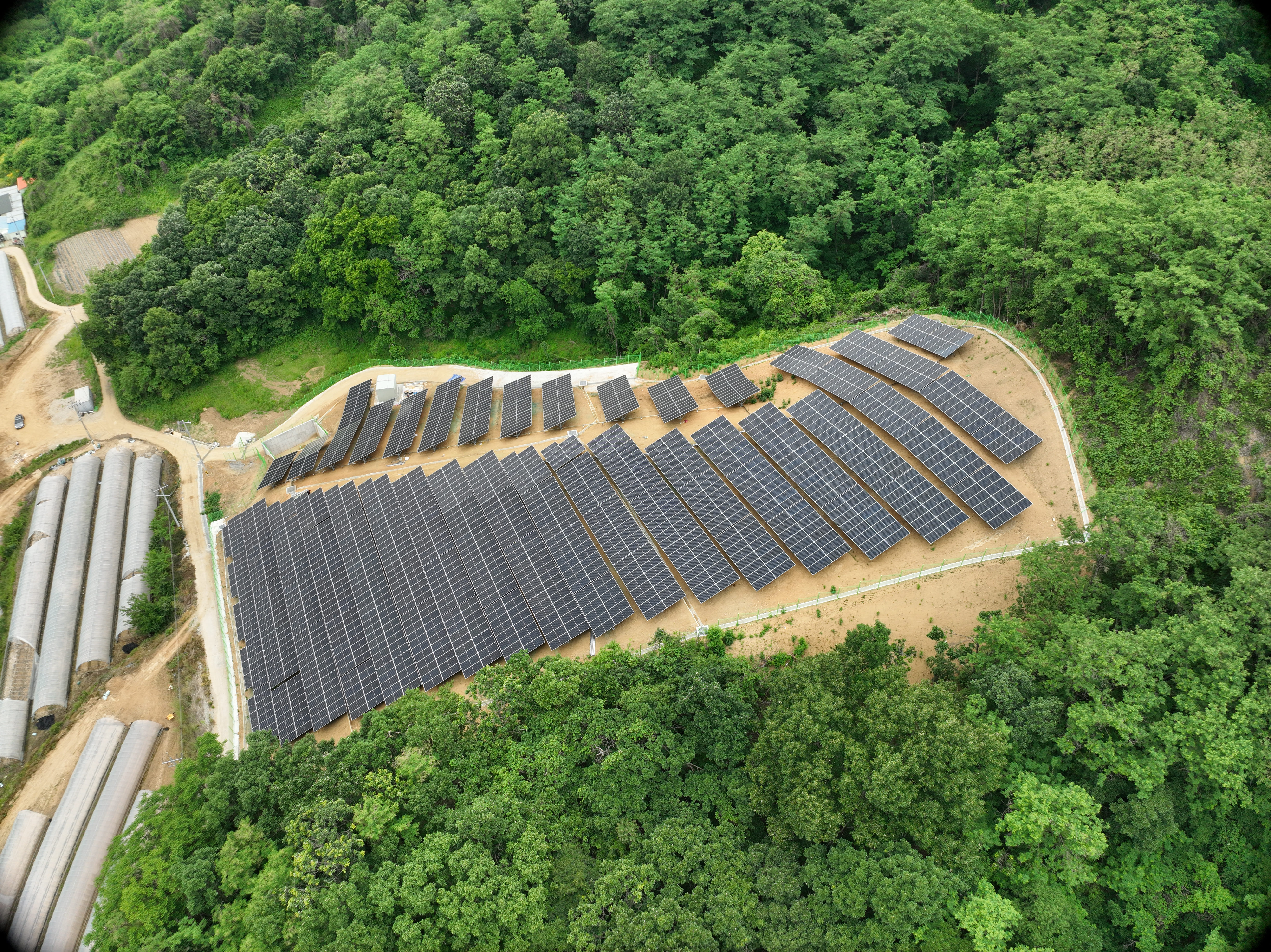 완만한 경사에 맞춰서 태양광 패널을 최적의 각도와 방향으로 설치할 수 있어서 패널 간의 간섭을 최소화해서 효율적인 에너지 생산이 가능하였습니다.
